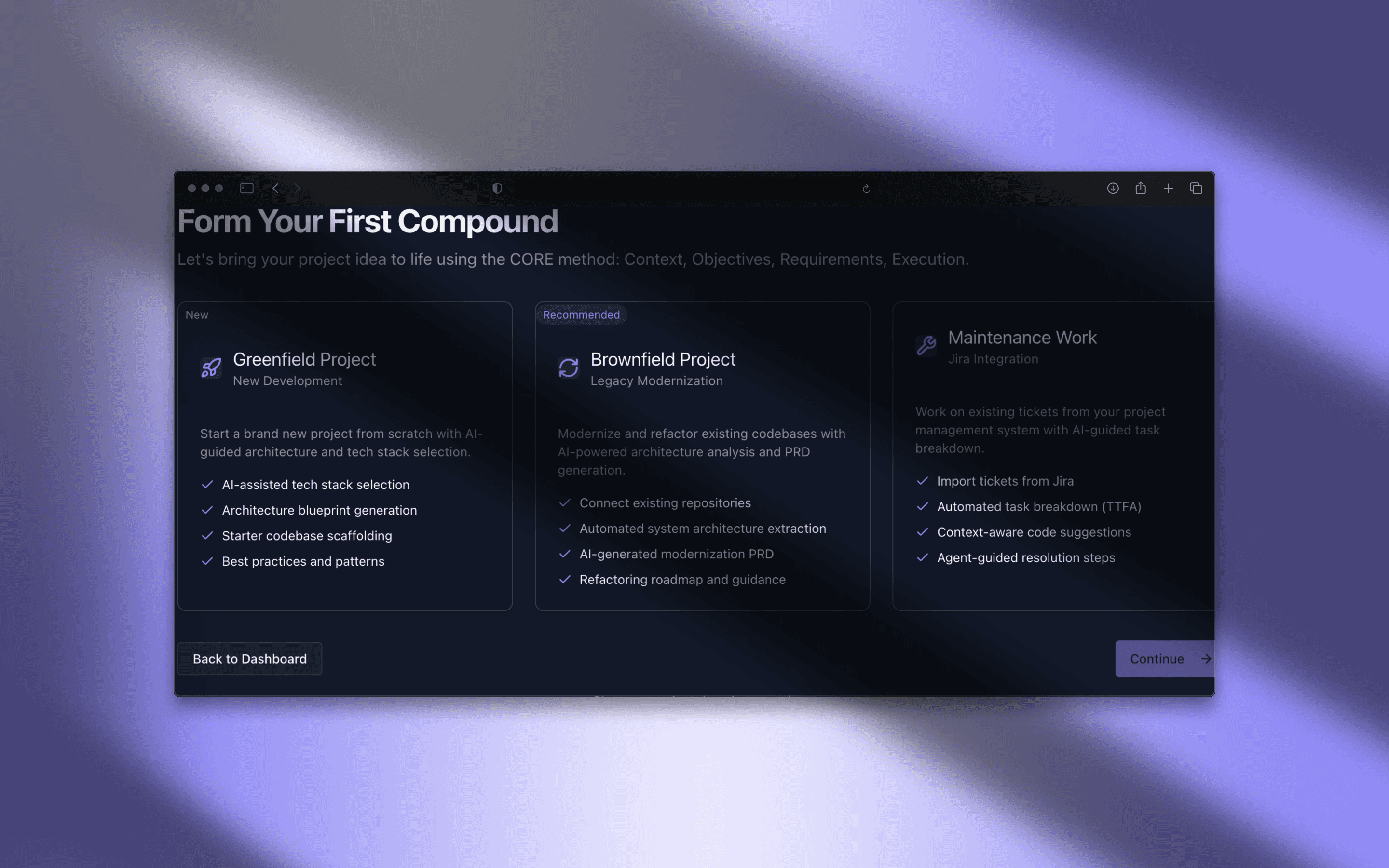 Compounds.dev unifies architecture, code, DevOps, security, and compliance and teams into one intelligent system that drives consistent, secure software engineering velocity.